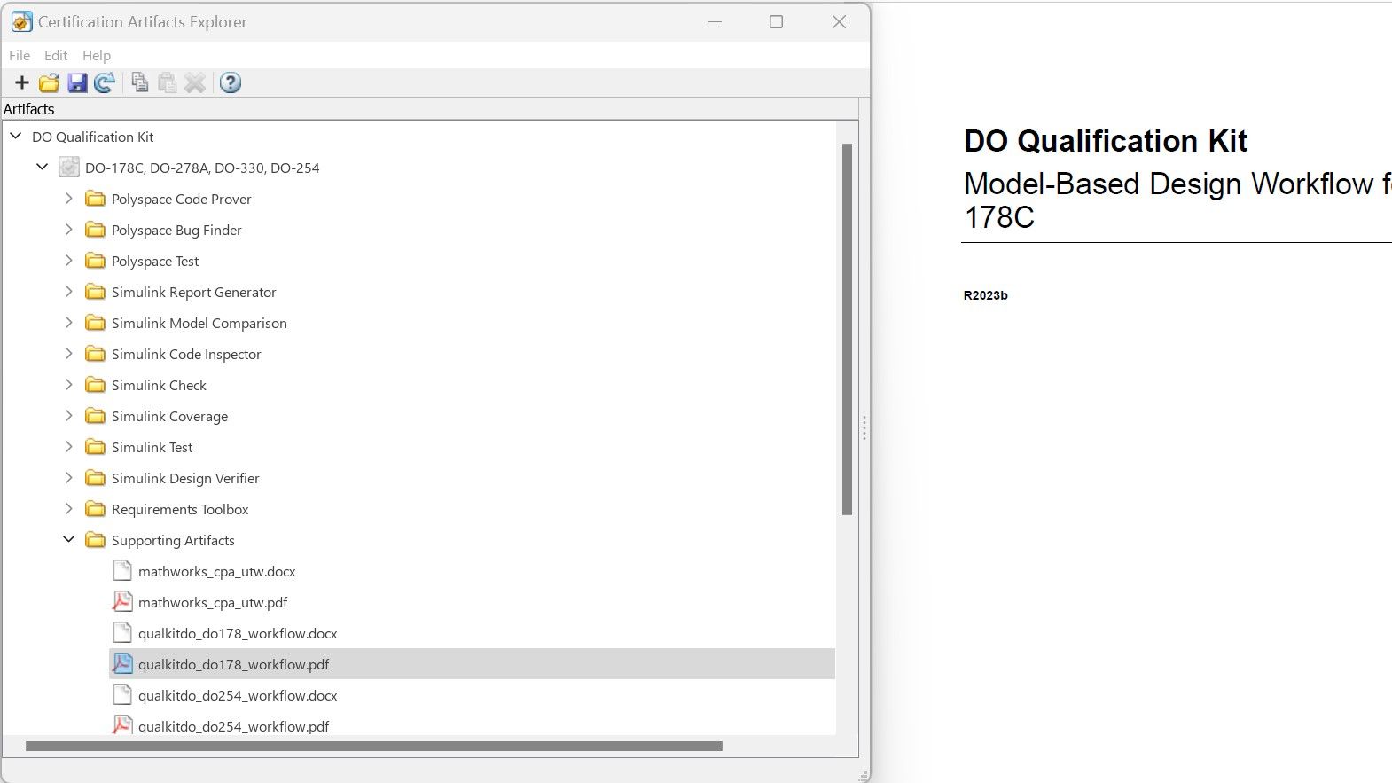 Tool qualification kits are available for specific versions of Simulink and Polyspace verification tools based on DO-330, Software Tool Qualification Considerations. You can modify the artifacts in the tool qualification kit for your specific project and include them in the DO-178C, DO-278A, and DO-254 certification packages submitted for certification.