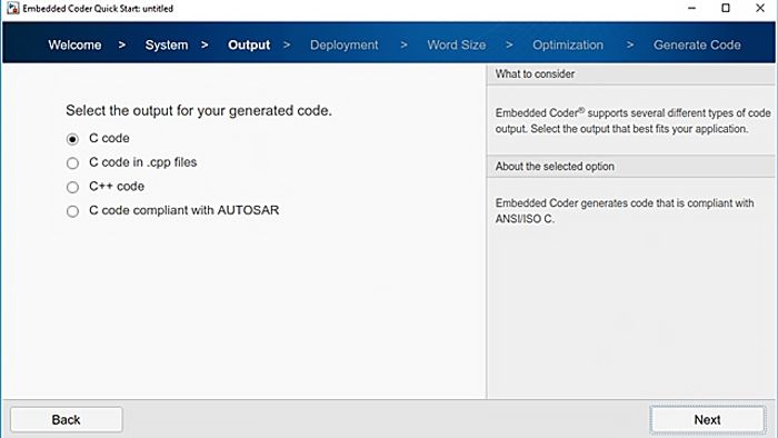 Configure and generate code from MATLAB and Simulink using apps, templates, and a command line interface for build scripts.