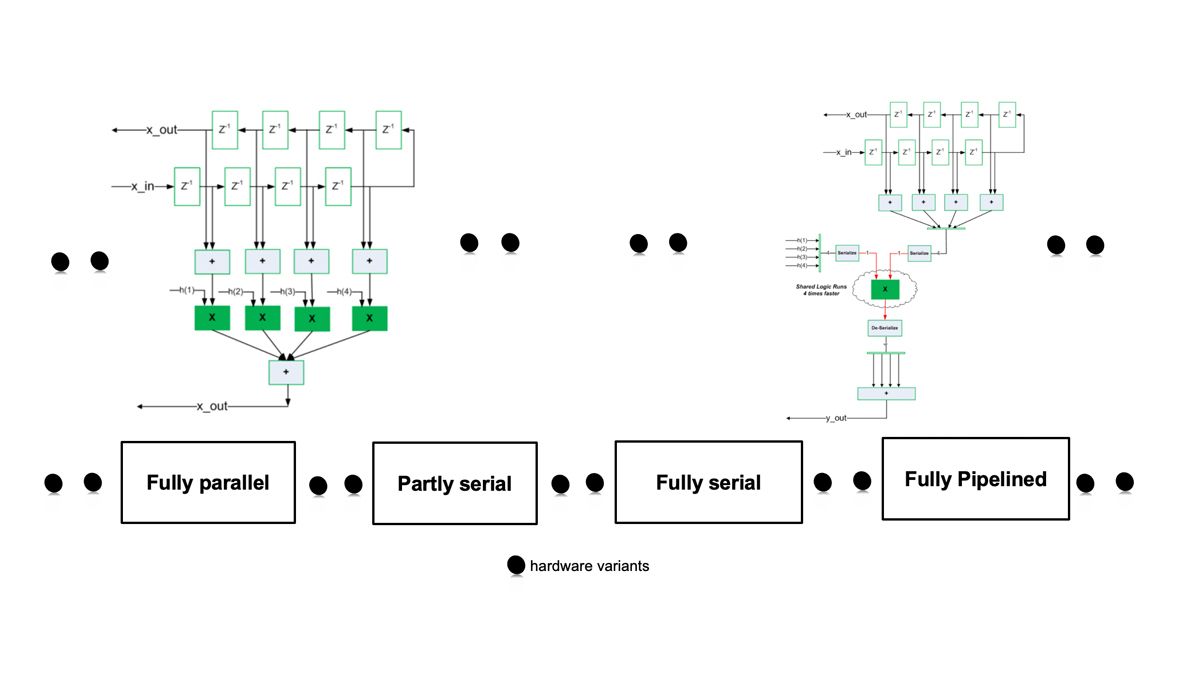 Explore a wide variety of hardware architecture and fixed-point quantization options before committing to an RTL implementation. Use high-level synthesis optimizations such as resource sharing, pipelining, and delay balancing, that efficiently map to device resources such as logic, DSPs, and RAMs.