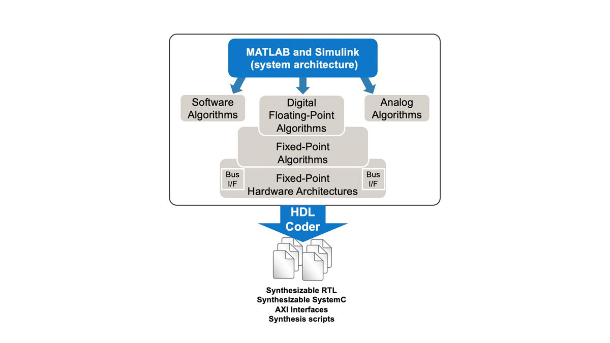 HDL Coder enables high-level design for FPGAs, SoCs, and ASICs by generating portable, synthesizable Verilog®, SystemVerilog, and VHDL® code from MATLAB functions, Simulink models, and Stateflow charts. You can use the generated HDL code for FPGA programming, ASIC prototyping, and production design.