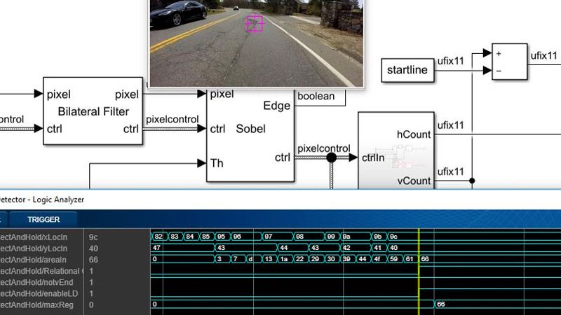 Design your subsystem by choosing from more than 300 HDL-ready Simulink blocks and MATLAB functions; add Stateflow charts, Simscape models, and deep learning networks. Simulate the hardware behavior of your design, explore alternative architectures, and generate synthesizable Verilog, SystemVerilog, or VHDL using fixed-point or floating-point data types or a combination of both.