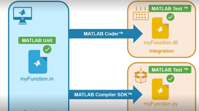 You can verify the expected behavior of artifacts created with MATLAB Coder and MATLAB Compiler SDK using functional equivalence testing techniques. MATLAB Test enables you to meet specifications in regulated applications by tracing requirements (with Requirements Toolbox). Support for industry standards is available with the IEC Certification Kit (for ISO® 26262, IEC 61508, and IEC 62304).