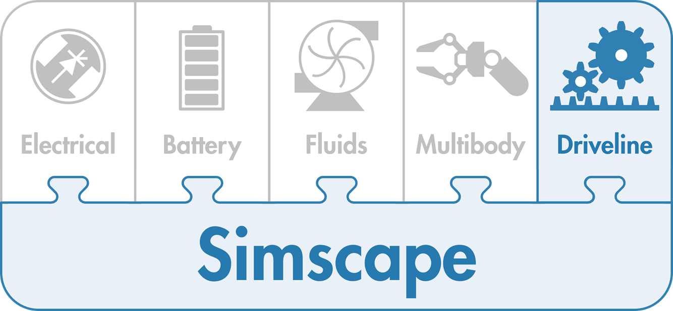 Simscape Driveline (formerly SimDriveline) provides component libraries for modeling and simulating rotational and translational mechanical systems. It includes models of worm gears, lead screws, and vehicle components such as engines, tires, transmissions, and torque converters. You can use these components to model the transmission of mechanical power in helicopter drivetrains, industrial machinery, automotive powertrains, and other applications. You can integrate electrical, hydraulic, pneumatic, and other physical systems into your model using components from the Simscape family of products.