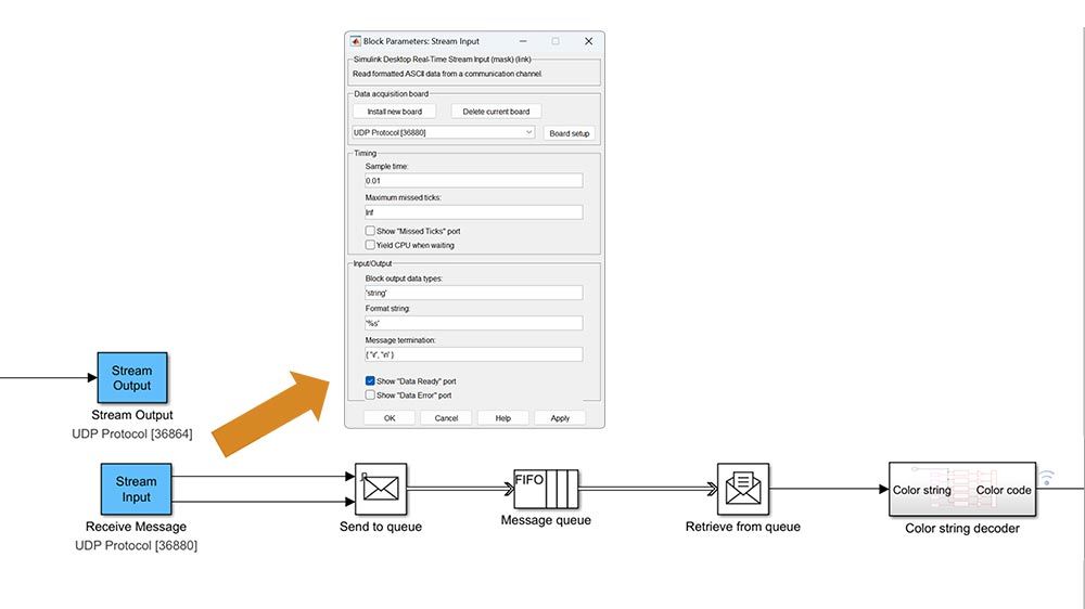 Drag-and-drop I/O blocks in your Simulink model to interface with external devices such as sensors and actuators.